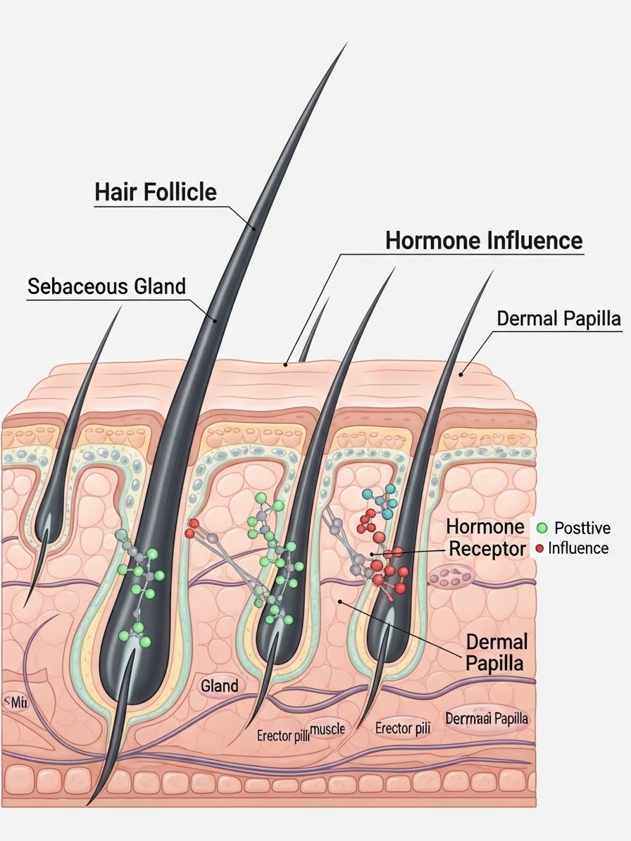Hormones are not just reproductive messengers. They are architects, quietly shaping how the body allocates energy, repairs tissue, and maintains youth. Estrogen supports hair density, skin elasticity, and moisture retention. Thyroid hormones regulate cellular turnover and growth speed. Cortisol influences inflammation and nutrient distribution. Insulin affects blood flow and oxygen delivery to the scalp.