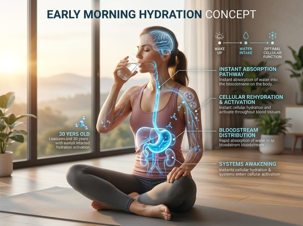 When you drink water on an empty stomach, the body absorbs it quickly because there is no food to slow down the process. This allows water to reach cells, tissues, and organs faster.