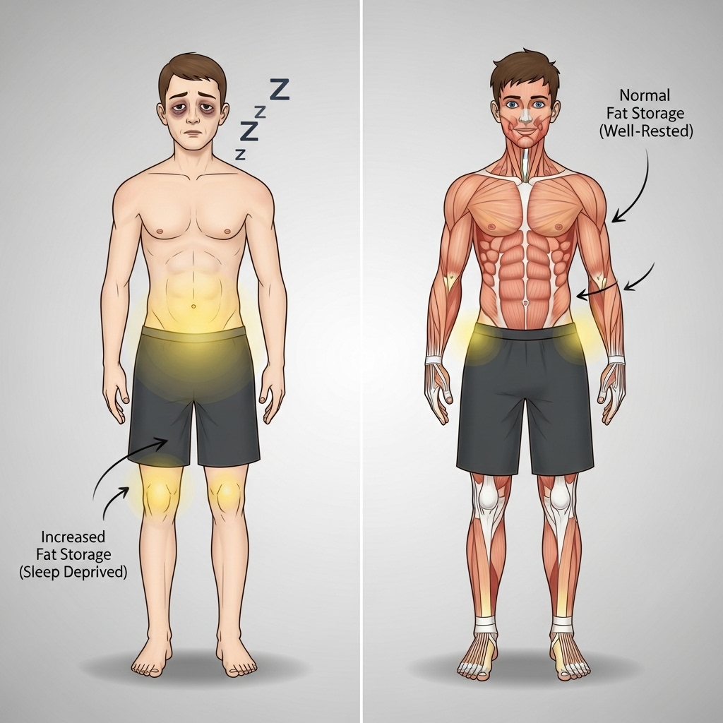 Yes. Sleep affects hormones and metabolism, causing fat storage even when calorie intake is moderate.